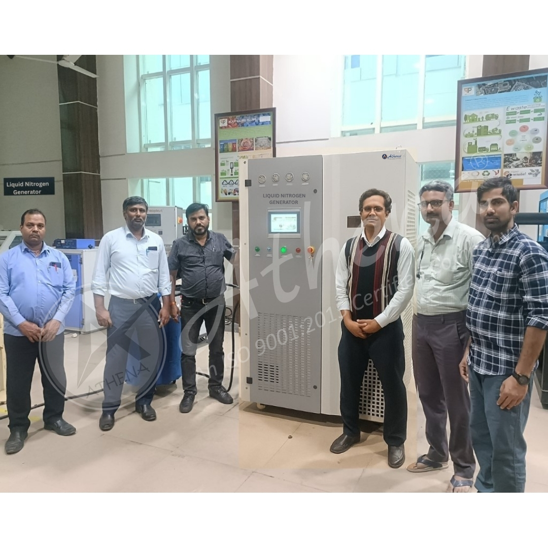 The liquid nitrogen generator equipment consists of three parts: nitrogen generator, refrigeration equipment, and Dewar tank. Its function is to automatically replenish liquid with one-key start-up. When the liquid nitrogen in the liquid nitrogen tank is lower than the set liquid level, the equipment automatically starts. The principle of automatic cascade refrigeration of mixed working fluids, the nitrogen is gradually cooled from the ambient temperature to the saturated condensation temperature of nitrogen liquefaction, the refrigerator can cool down to -196°, and the liquid nitrogen liquefied in the refrigeration evaporator is transported to the liquid nitrogen tank. Save and obtain liquid nitrogen, the equipment automatically detects the liquid nitrogen level in the Dewar tank, and automatically controls the operation of the equipment.